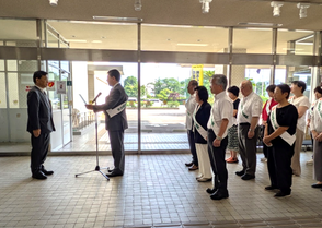 7月2日(火)、多久市役所において、内閣総理大臣及び県知事メッセージの伝達式が行われました。また、多久市内各所において社明広報活動が行われました。